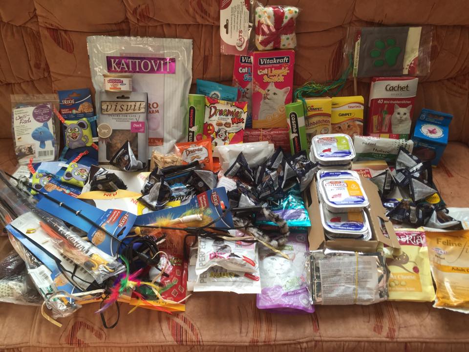 Futterspenden, Katzenspielzeug und Kuschelkissen für unsere Pflegekatzen können direkt an die Pflegestellen geschickt werden. Die Adressen können Sie bei uns erfragen: