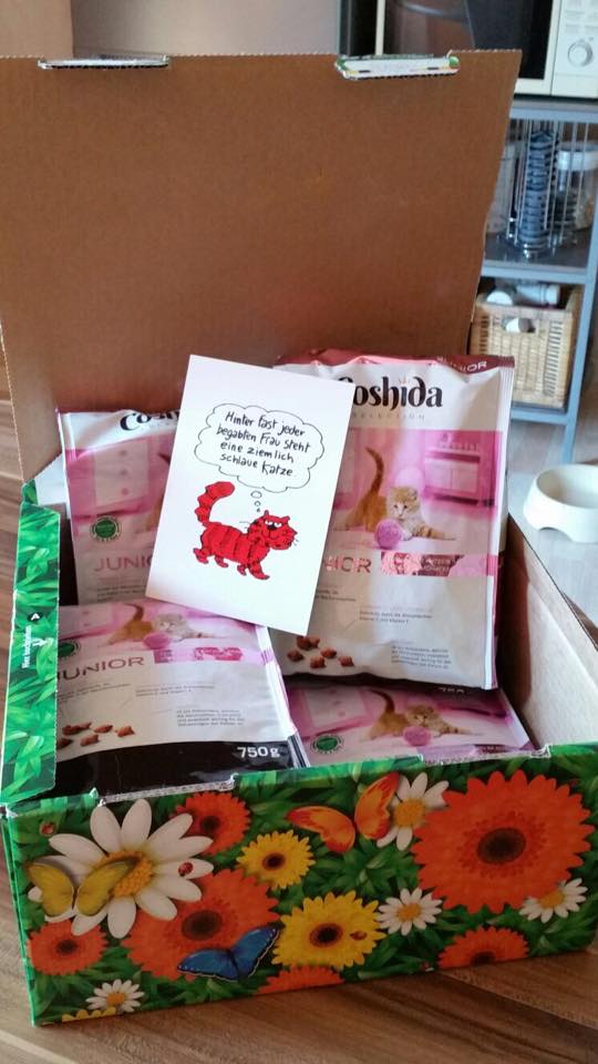 Futterspenden, Katzenspielzeug und Kuschelkissen für unsere Pflegekatzen können direkt an die Pflegestellen geschickt werden. Die Adressen können Sie bei uns erfragen: