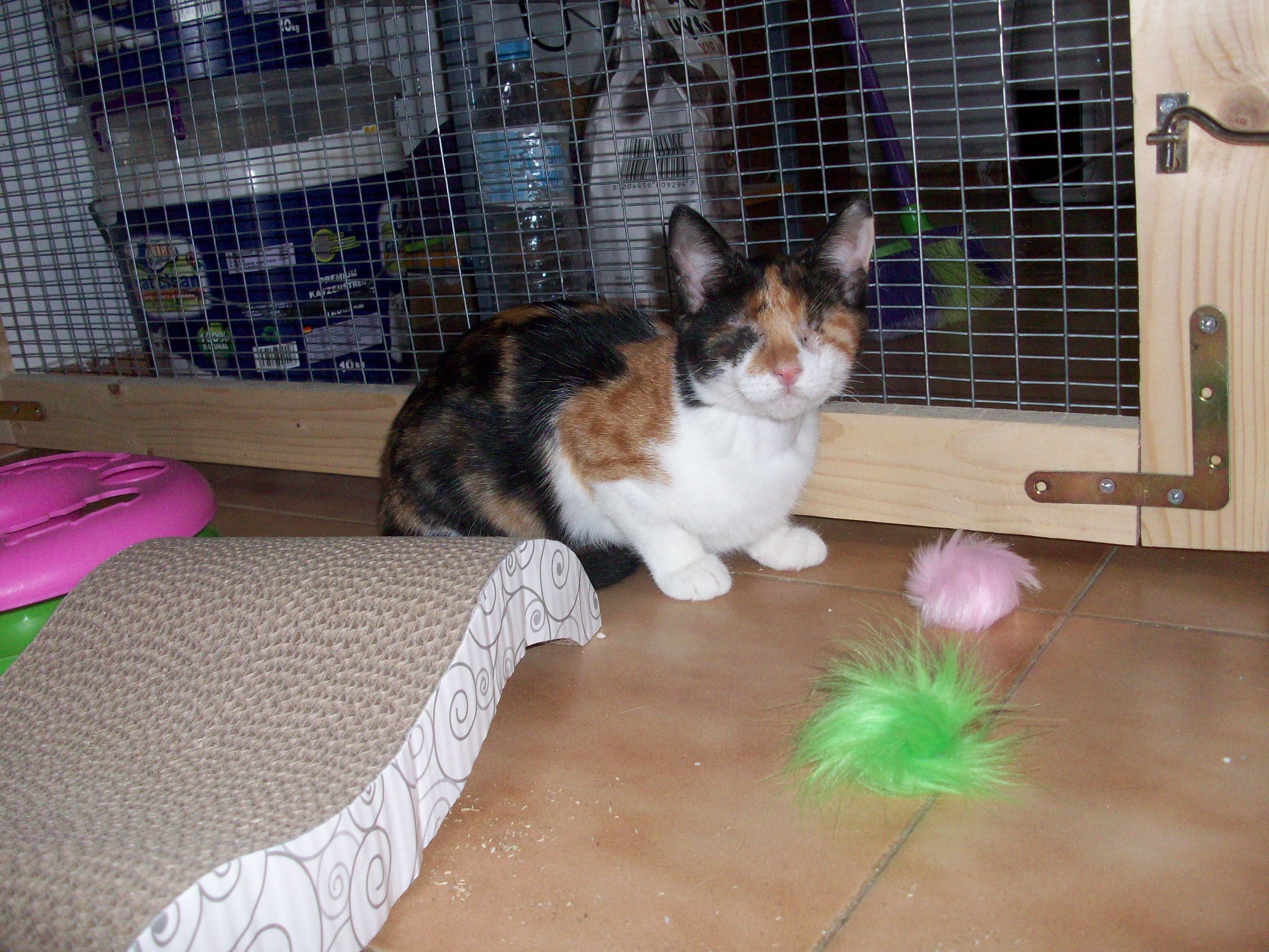 Mit anderen Katzen und neuen Eindrücken kommt sie ebenfalls gut klar, ist anfangs nur etwas vorsichtiger bis sie sich auskennt. Da Katzen durch ihre Schnurrhaare ebenfalls sehr viel 'sehen' merkt man Eleni ihre Blindheit kaum an!