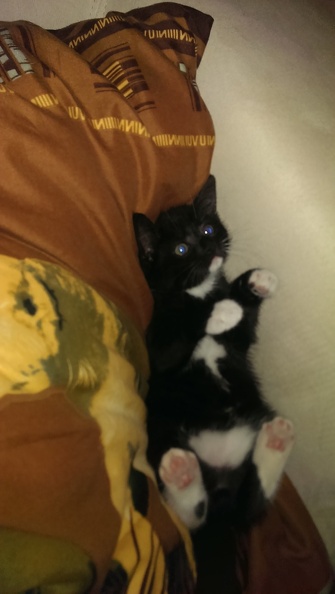 Jedenfalls ist er ein schmusiges, kleines Ding. Und wenn er nicht mit Mama schmust, dann sehr gerne mit dem Jim. Die Beiden kleben ganz fest aneinander. Dann schnurren sie gemeinsam um die Wette und es ist schwer zu sagen wer lauter schnurrt - vermutlich aber Jim.