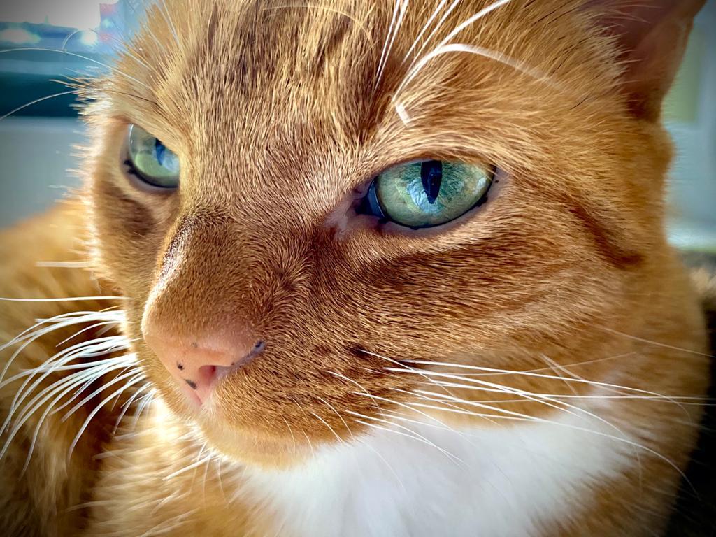 Momo sollte ohnehin nicht raus, denn sie hat leider Katzen FIV und wäre für andere Katzen ein Gesundheitsrisiko. Außerdem leidet sie an einer Nierenisuffizienz, die regelmäßig kontrolliert werden sollte und wodurch sie nierenschonendes Futter (renal) essen muss.