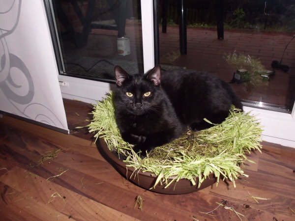 Unsere schwarze Schönheit Charlotta stammt von einem Hof, auf dem wir mehrere Katzen bereits kastriert haben.