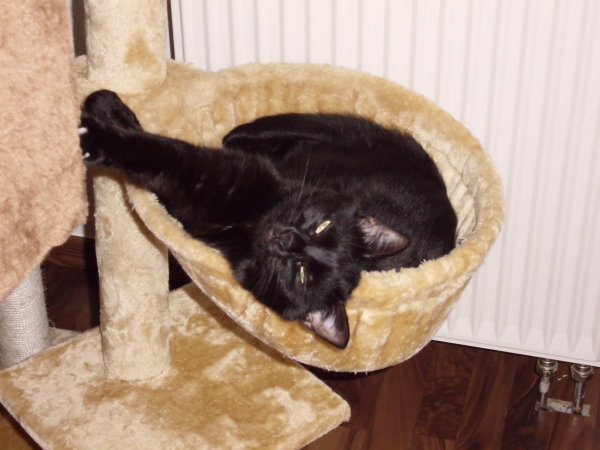 Sie liegt am liebsten an einem kuscheligen, warmen Platz und schläft. Toben und Spielen sind ihr nicht so wichtig. Selbstverständlich hat auch sie ihre 5 Minuten, die so bekannt für Katzen sind. In denen tobt sie durch die Wohnung, als wäre sie ein Kitten, jedoch fängt sie kurz darauf an zu gurren wie eine Taube und sinkt dann ausgepowert wieder zusammen um ihrer Lieblingsbeschäftigung nachzugehen: