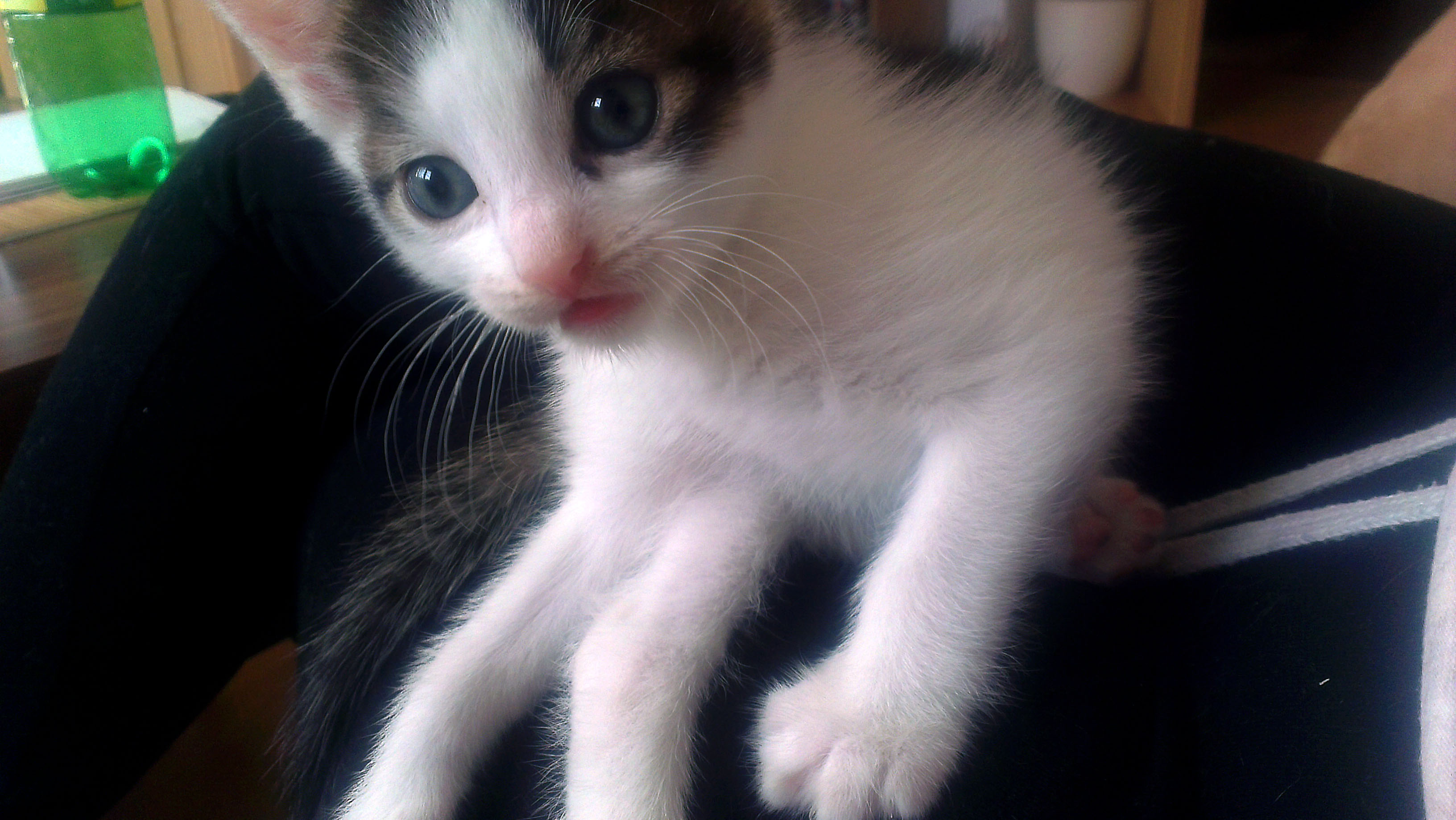 Sunny erblickte am 6. April 2014 das Licht der Welt, nachdem seine Mama Emma quasi pünktlich zur Geburt bei Kristina und Tobi auf der Pflegestelle eingetroffen war. Im Moment bekommt er noch all-inclusive Service von Mama Emma, allerdings hat er neuerdings auch schon Nassfutter-Milchshakes für sich entdeckt. Ansonsten erkundet er die große weite Welt seines Pflegestellen-Zuhause und hält dort alle auf Trab.