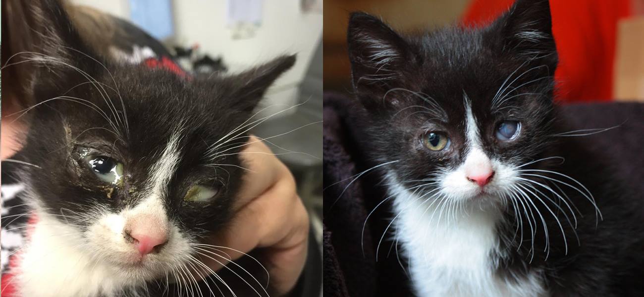 Ich, Grisu bin einer von 5 Geschwistern, die mit heftigem Katzenschnupfen aus einer Scheune geholt wurden.