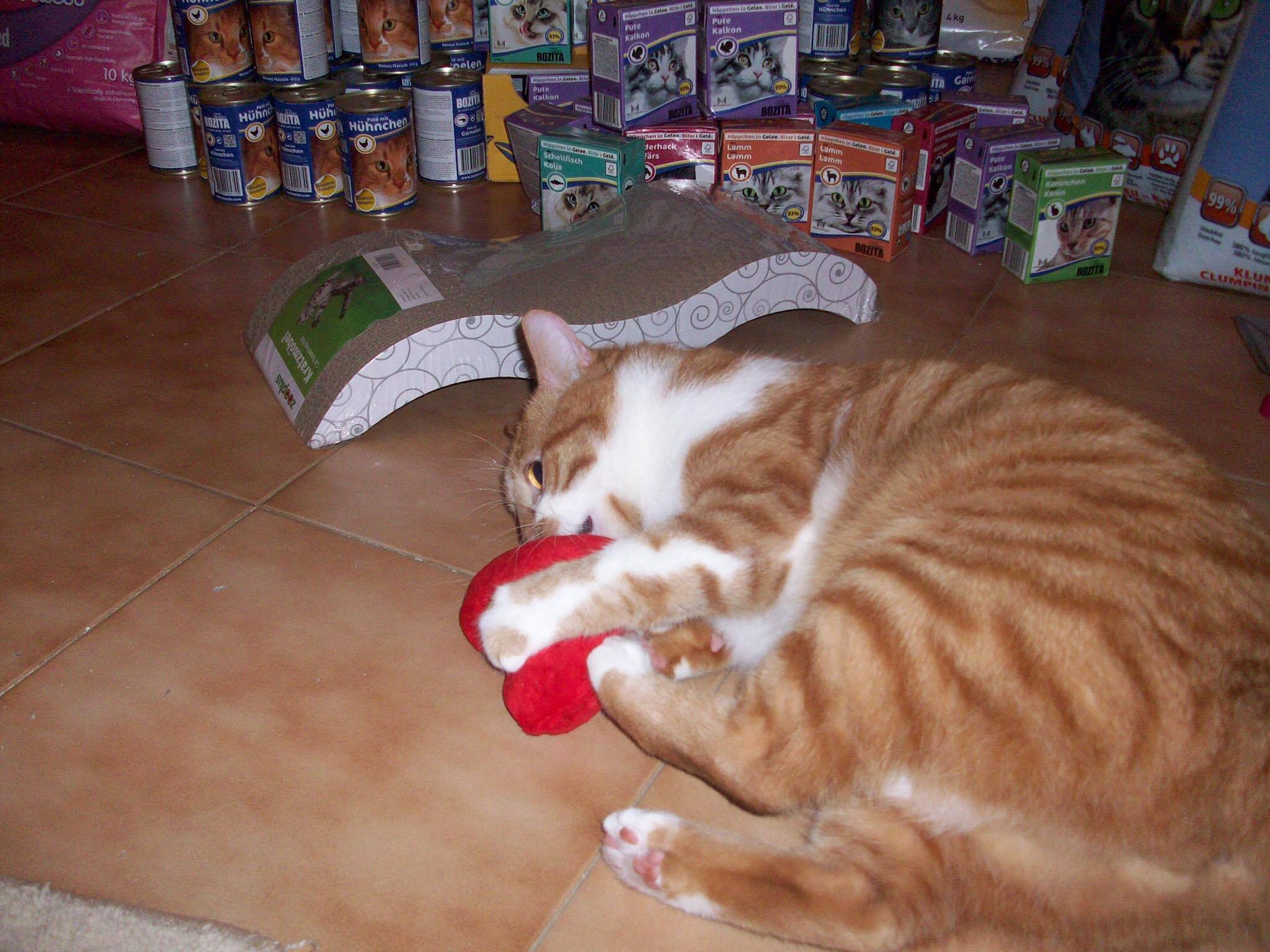 Für sein zukünftiges Zuhause ist es wichtig, dass jedwedes Plastik entweder abgesichert oder in Schränke o.ä. weggestellt wird, denn leider hat Mr. Red Pica. Dies ist eine Verhaltensstörung bei der Lebewesen meist unverdauliche aber zumindest abnormale Materialien wie eben in seinem Fall Plastik fressen. Sonst wird er davon aber in keinster Weise beeinträchtigt und seine zukünftigen Besitzer bekommen eine tolle Katze.