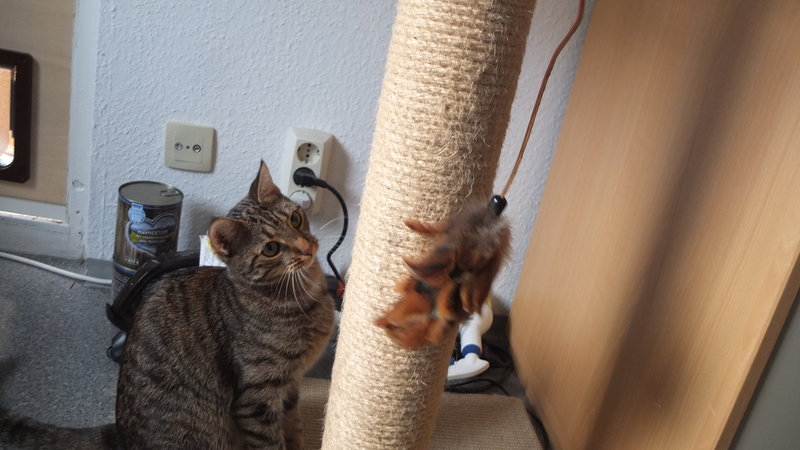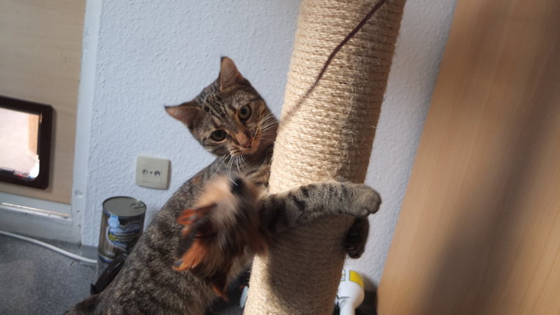 Natürlich darf auch das spielerische nicht fehlen! Nara ist typisch kätzisch eine aufmerksame Lauerjägerin, die mit ihren Mitkatzen fröhlich gurrend Fangspiele auf allen Ebenen spielt.