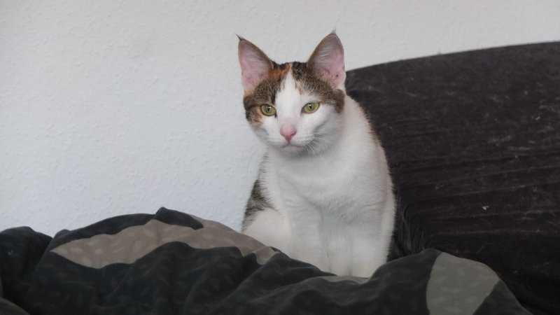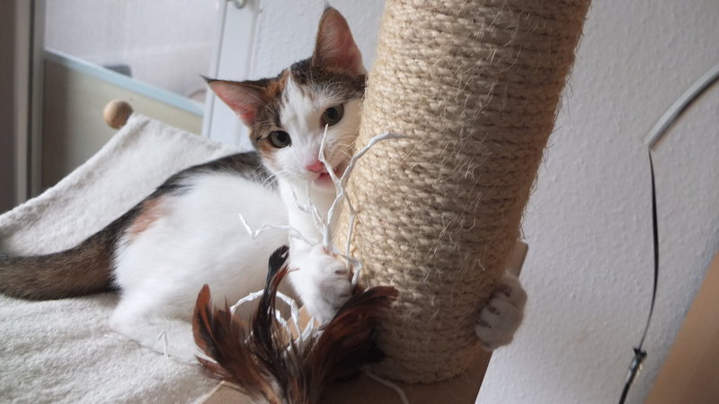 Charakter: Katzentypisch verspielt, aufgeweckt, eher Distanzkatze mit anderen Fellnasen