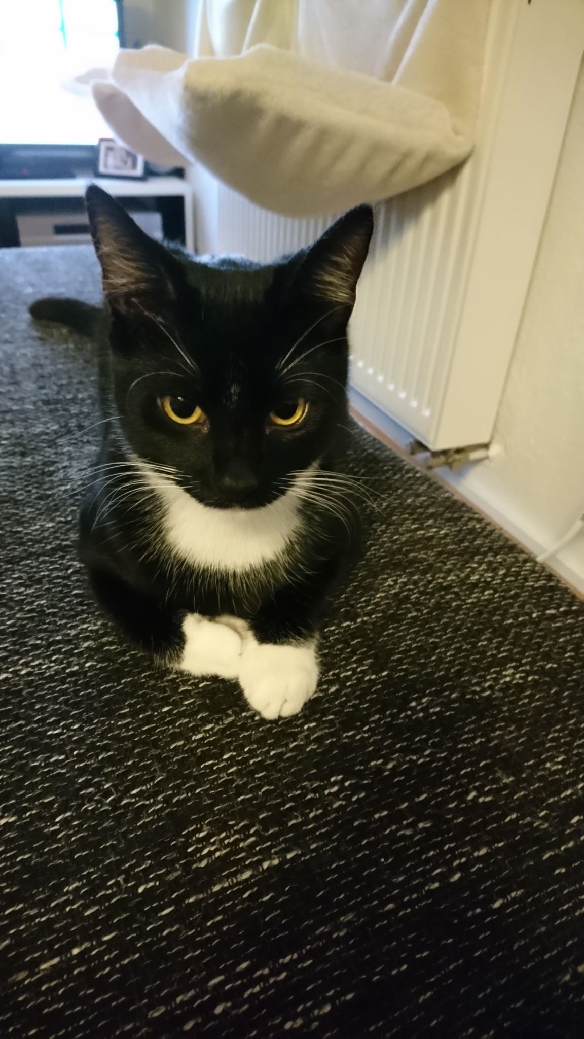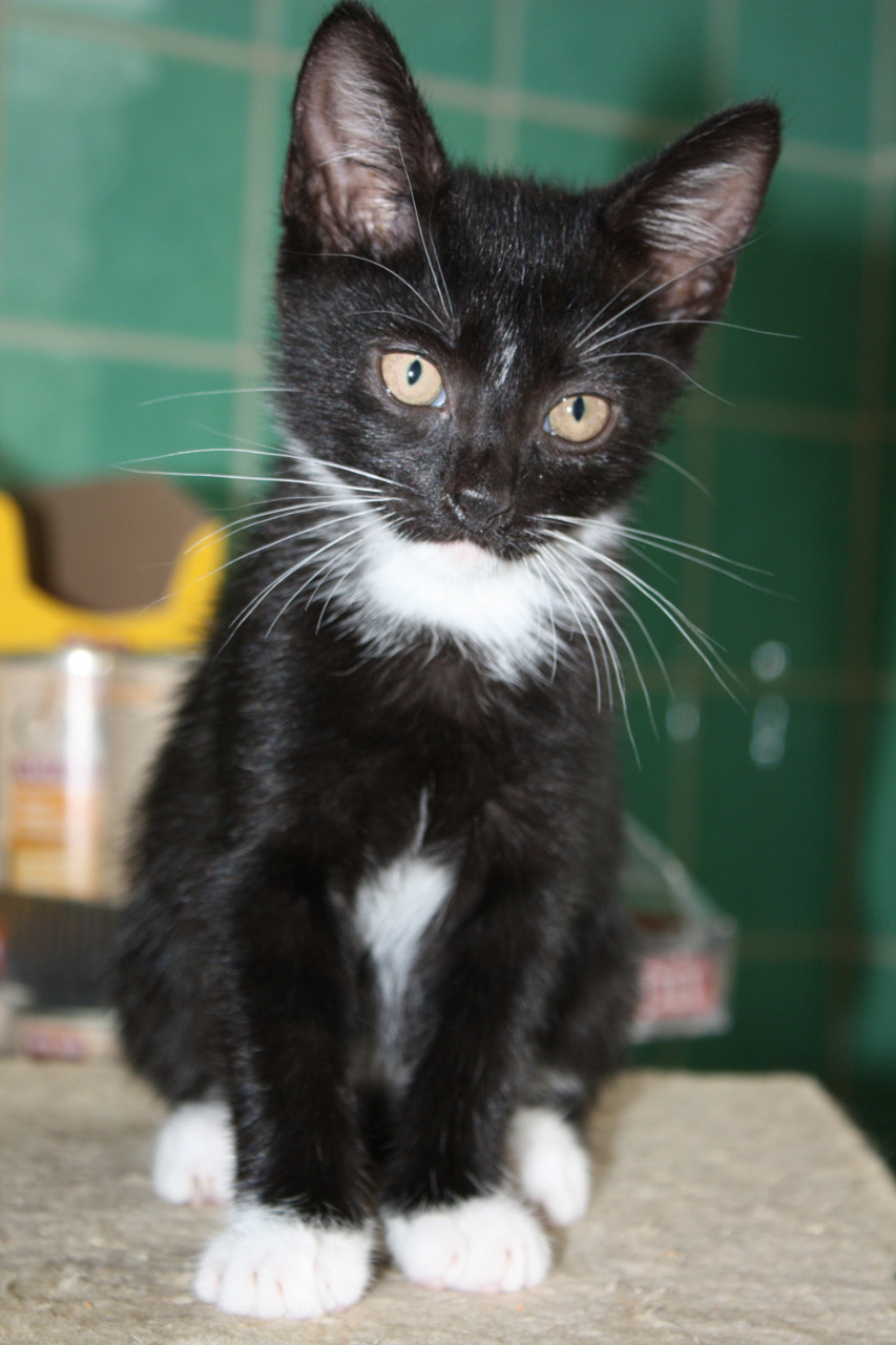 Farbe: schwarz mit weißen Pfoten und weißem Latz