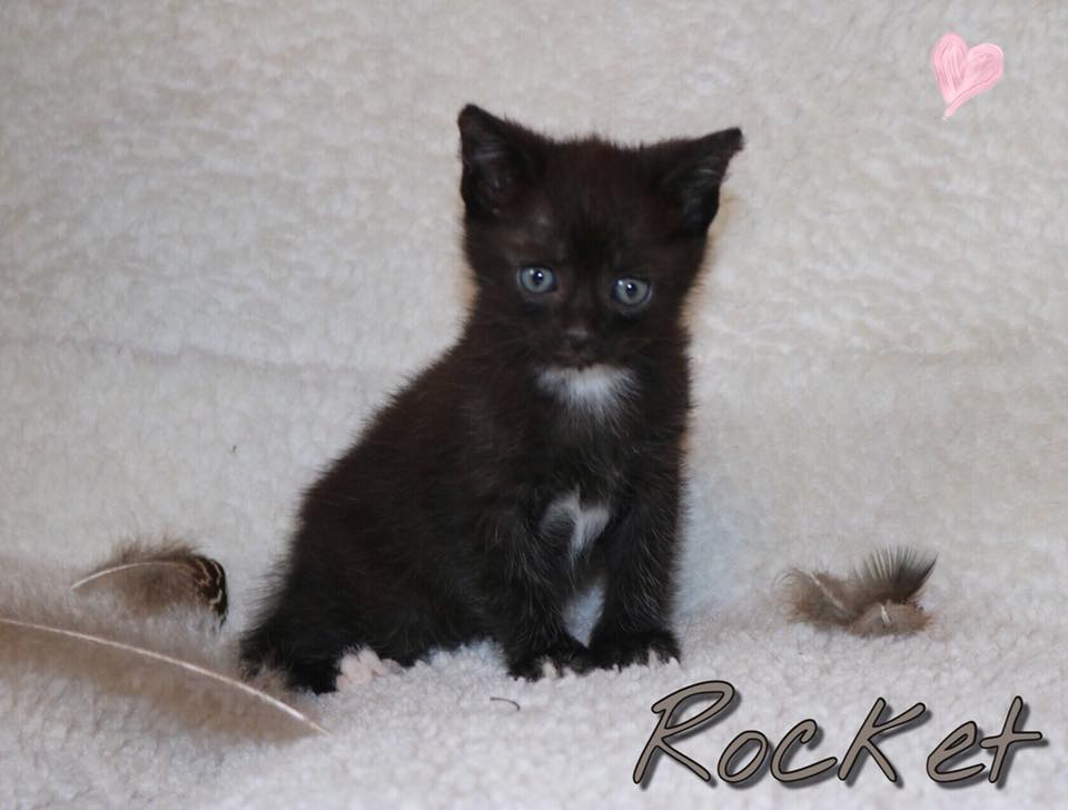 Mit seinen Geschwistern tobt er unermüdlich durch das Kittenzimmer, aber auch kuscheln und putzen kommt bei Rocket nie zu kurz. Er kümmert sich rührend darum dass alle saubere Ohren haben. Momentan ist Wanja sein liebster kätzischer Begleiter in allen Lebenslagen.