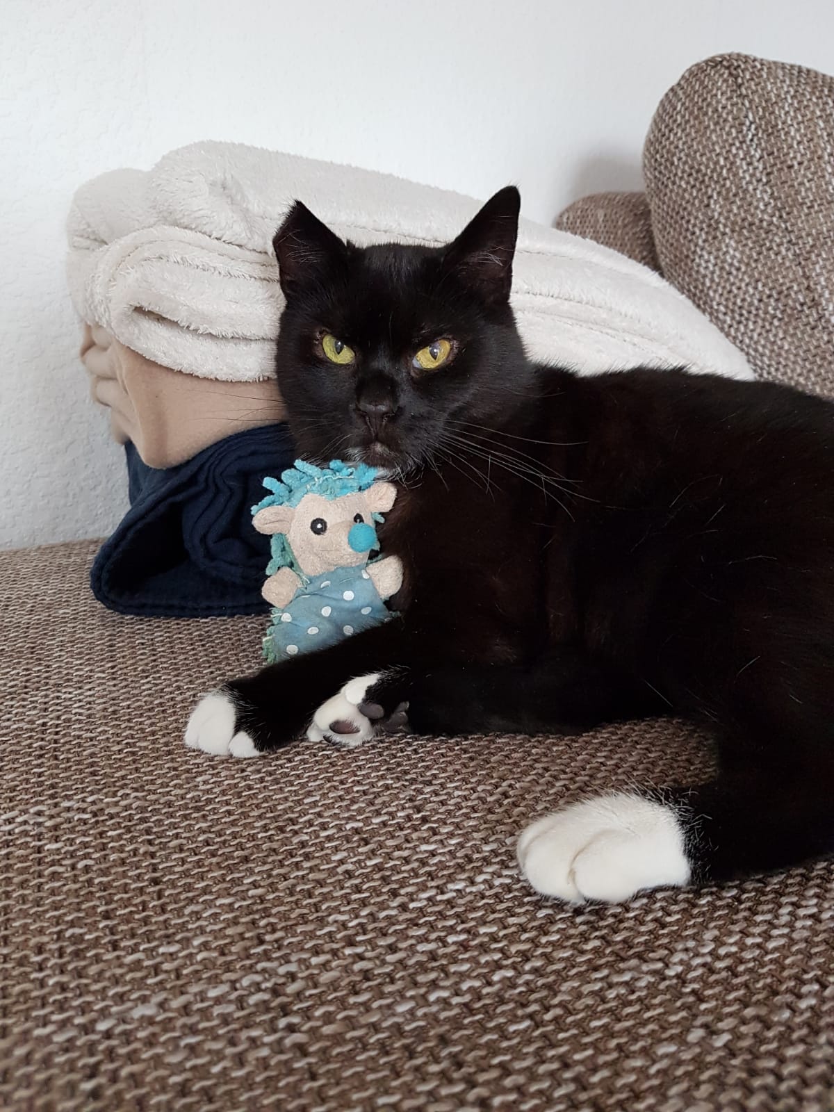 Wenn sie Vertrauen gefasst hat, kommt sie sehr gern zum Kuscheln, möchte allerdings nicht hochgehoben werden.
