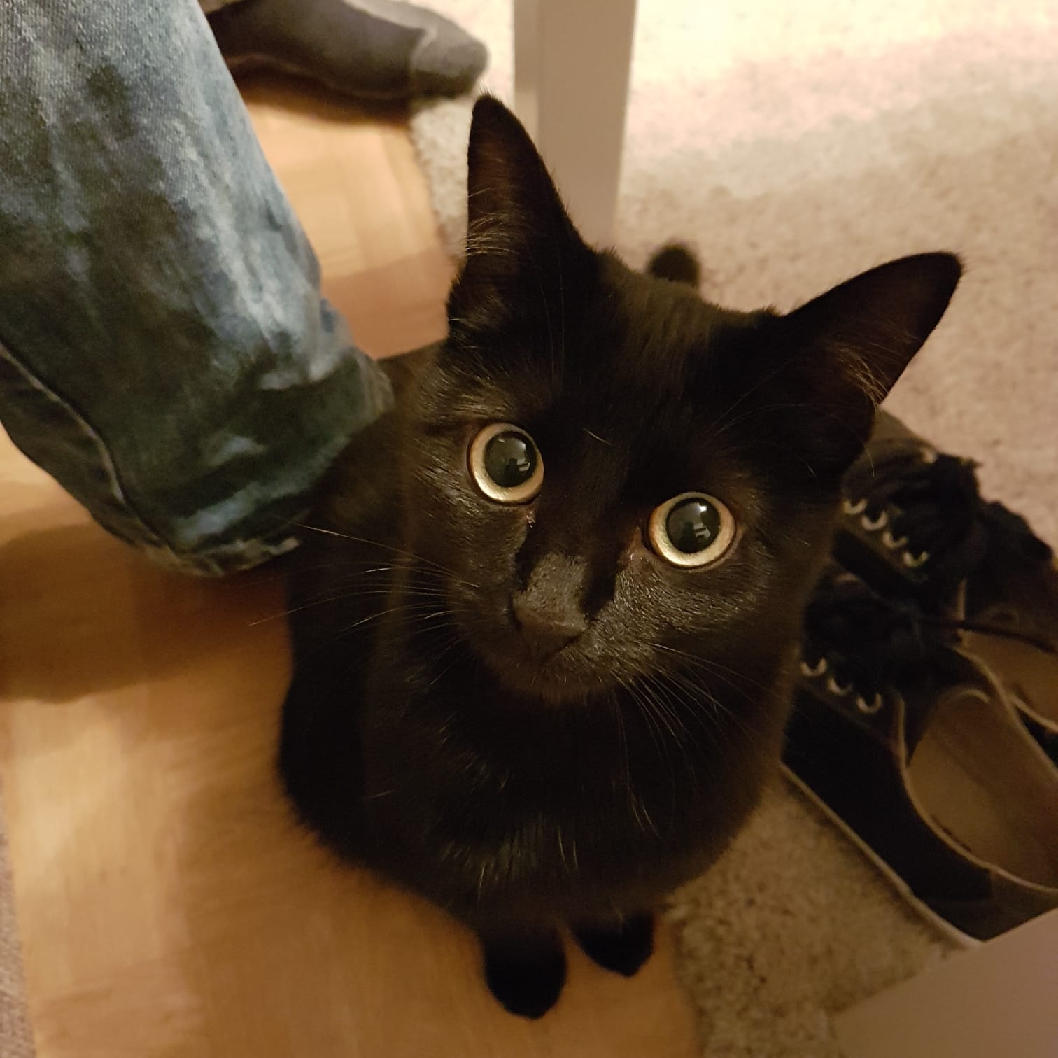 Fremden Menschen gegenüber ist sie anfangs misstrauisch, hat sie jedoch Vertrauen gefasst, kommt sie gern mal zum Streicheln und legt sich zum Kuscheln zu einem ins Bett oder aufs Sofa.