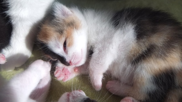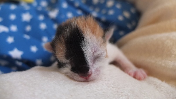 Malaika war die erste im Bunde. Sobald sie sehen, hören und laufen konnte zeigte sie sich stets ein kleines Quentchen interessierter am Menschen, kam schon früh zum Rand des Laufstalls gewackelt wann immer sie wach war und sich die Pflegetante zeigte. Mit 3 kraftvollen Brüdern hat die Maus einiges zu tun und zeigt bereits jetzt sehr schnell durch Protestquietschen mit jedem ihrer Brüder, dass ihr das zu viel und zu grob ist. Da kam der Mensch ihr teilweise gerade recht und mit 4 Wochen schon kuschelte sie sich schnurrend bei Mensch ein. Nun aktuell hat sie - wie ihre Geschwister auch - natürlich meist viel aufregenderes im Sinn als zu liegen und kuscheln ;-)
