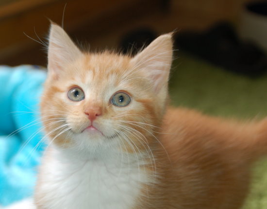 Dann bin ich auf Aimée gestoßen und hab mich gleich in ihr Grinsegesicht verliebt. Eigentlich mochten mein Freund und ich keine roten Katzen, aber die Kleine hat uns sofort überzeugt und wir uns in sie und ihren Plüschpo verliebt.