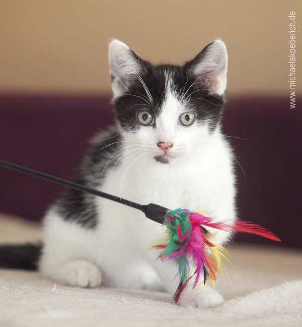 J-K kommt ganz nach Mama ... spielen ist ganz klasse - aber kuscheln muss nun echt nicht sein. Er liebt seine Spielmaus und kann auch schon ganz fleißig knurren, wenn eines seiner Geschwisterchen ihm zu nahe kommt. Er trägt seine "Beute" auch immer brav mit sich herum und schläft sogar drauf.