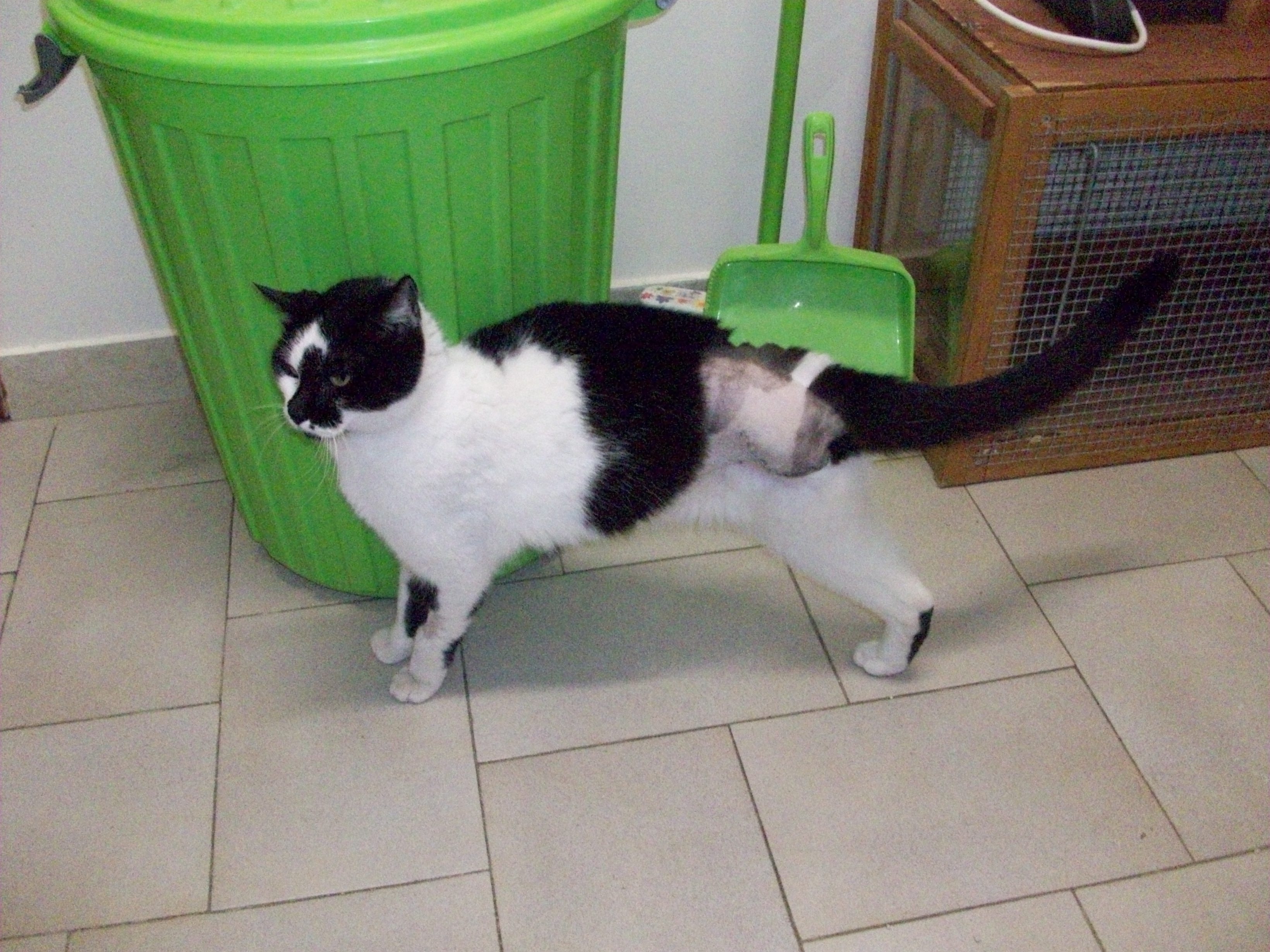 Die ca. 2 1/2 Jahre alte Mrs. Spot ist ein ganz liebes Mädchen... und genau das wurde ihr zum "Verhängnis". Da sie ganz offen auf Menschen zugeht, hatte ein Katzenhasser leichtes Spiel für seine grausame Tat. Mrs. Spot wurde an einem Bein aufgehangen und gequält. Bis Malenes Freundin sie fand, war sie schon nur noch Haut und Knochen. Die Verletzungen an ihrem Bein waren so schwer, dass es nur noch amputiert werden konnte. Trotz aller Strapazen, die sie durchlitten hat, ist sie noch immer sehr menschenbezogen und lieb.
