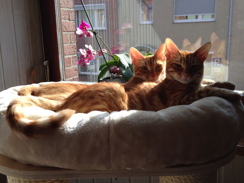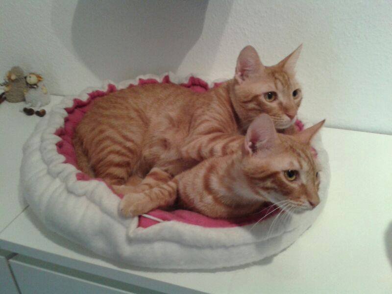 Typisch nach Katermanier raufen, toben und spielen beide zusammen, weshalb die Beiden nur im Doppelpack vermittelt werden.