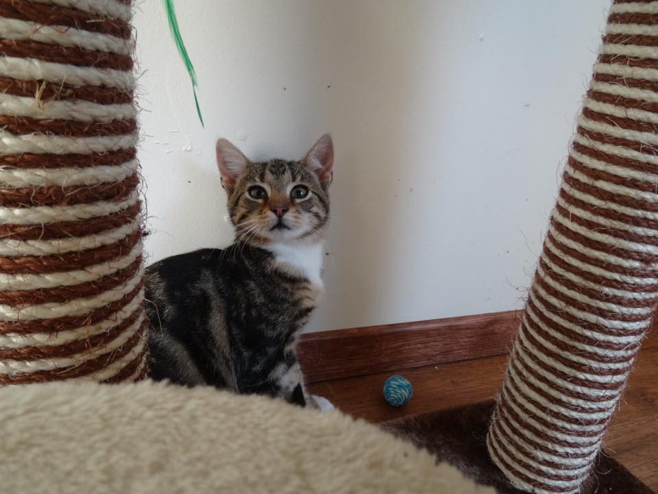 Lasse spielt gerne mit Bällen und Mäusen, lässt sich aber auch ab und zu zu einem Spiel mit dem Federstab hinreißen. Er ist größtenteils ein sehr ruhiger Kater, der gerne überall dabei ist.