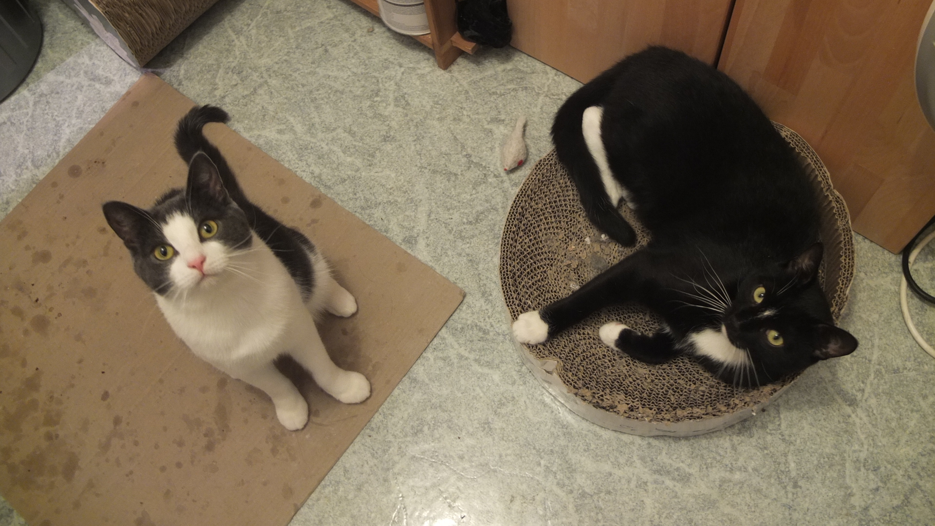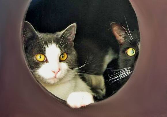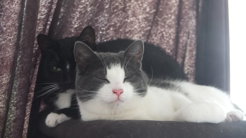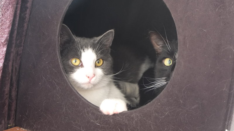 Auch wenn Kater generell gesprochen eher rabiat spielen: Diese beiden werden zusammen vermittelt, da Lino dank Webcambeobachtung tatsächlich nur fangen und ganz selten mal sanftes raufen mit Ivy spielt - und genauso umgekehrt. Das höchste der Gefühle für die beiden ist es, zwischendurch in ein Loch der großen Kratztonne zu huschen und von dort aus Scheinangriffe zu starten. Auch sonst lieben sie sich sehr: Nach fast jeder Mahlzeit wird sich ausgiebig gegenseitig geputzt und oft findet man sie aneinander gekuschelt.