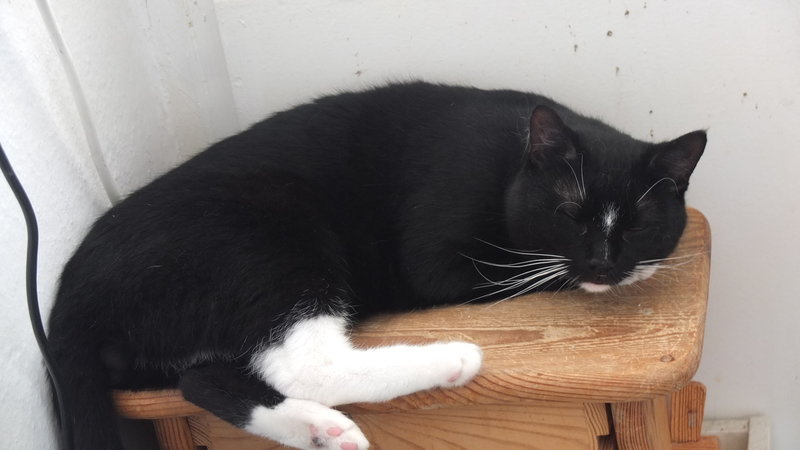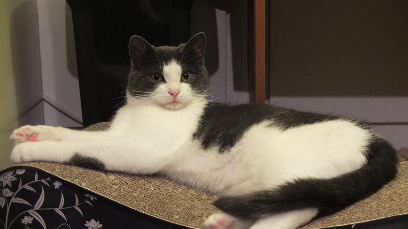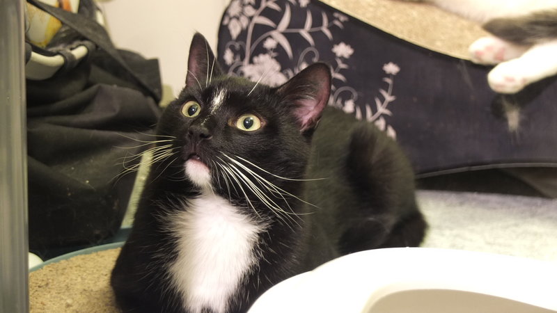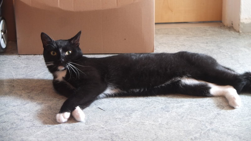Eine Zusammenführung mit anderen Katzen wurde noch nicht komplett durchgeführt, allerdings kann man schon sagen dass Linneo sehr freundlich ist (gurrt fragend, möchte andere an der Gittertür