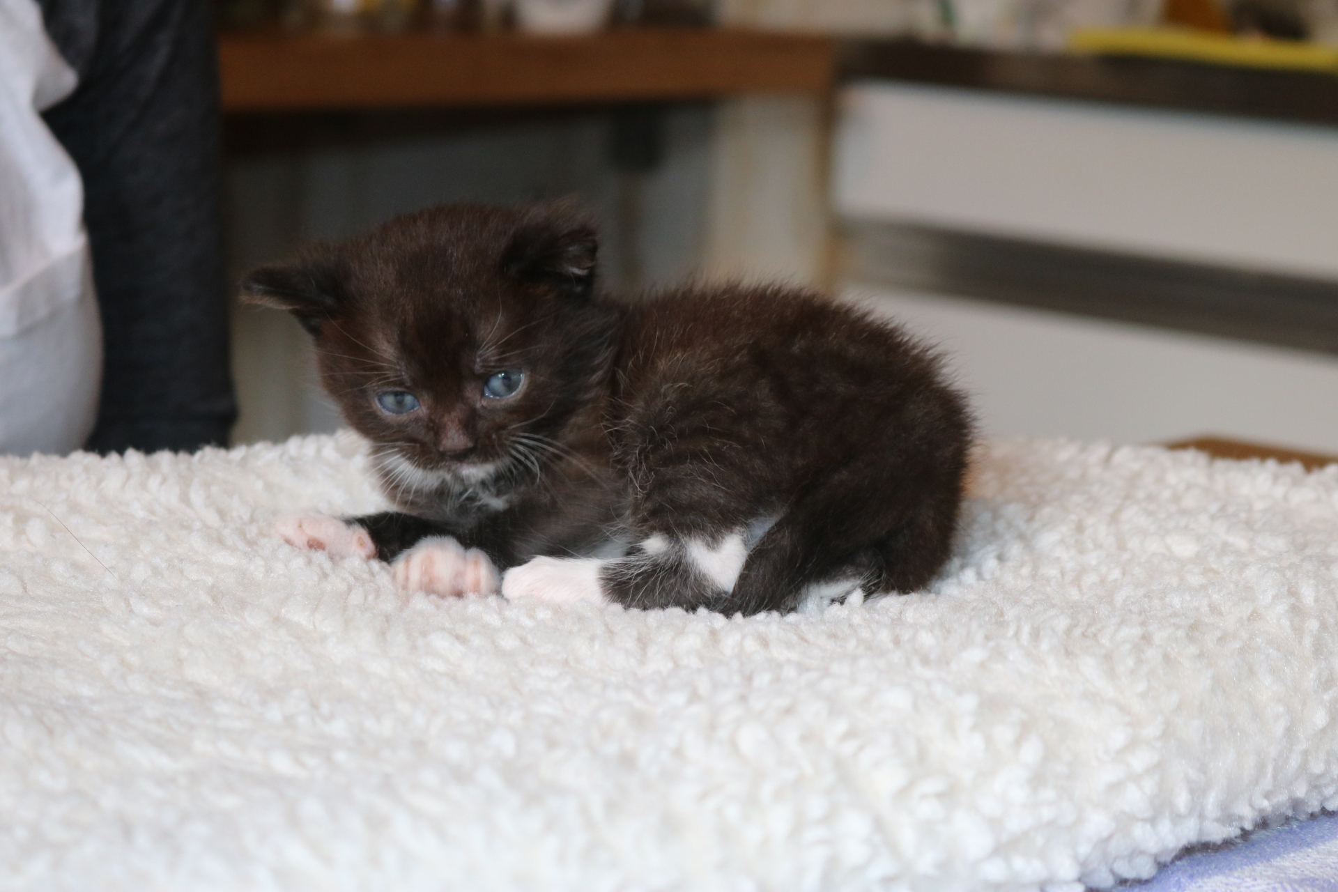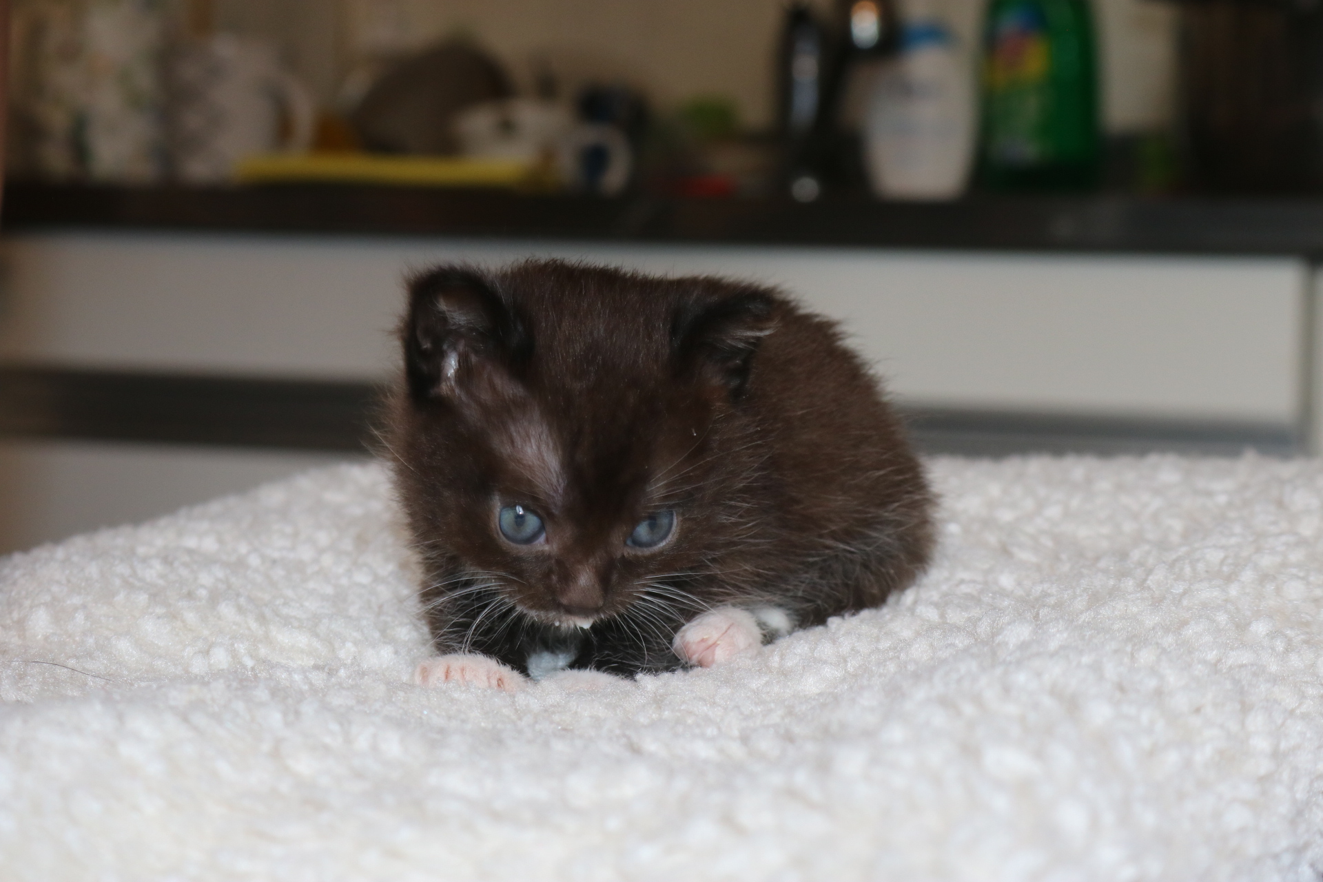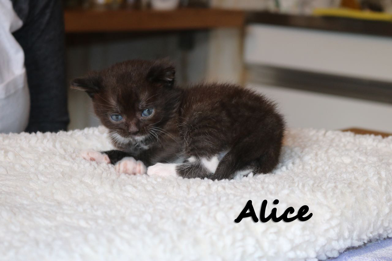 Als Sorgenkind der Kittengruppe wurde Alice mit der Flasche groß gezogen, lange war sie die Kleinste aber hat dank ihres unbeugsamen Lebenswillens gut aufgeholt. Sie hatte von Anfang an am meisten Menschenkontakt. Alice ist verkuschelt und möchte viel Zeit mit ihren Menschen verbringen. Wenn das Kittenzimmer betreten wird muss sie als erstes Hallo sagen und möchte erst mal auf den Arm genommen werden.