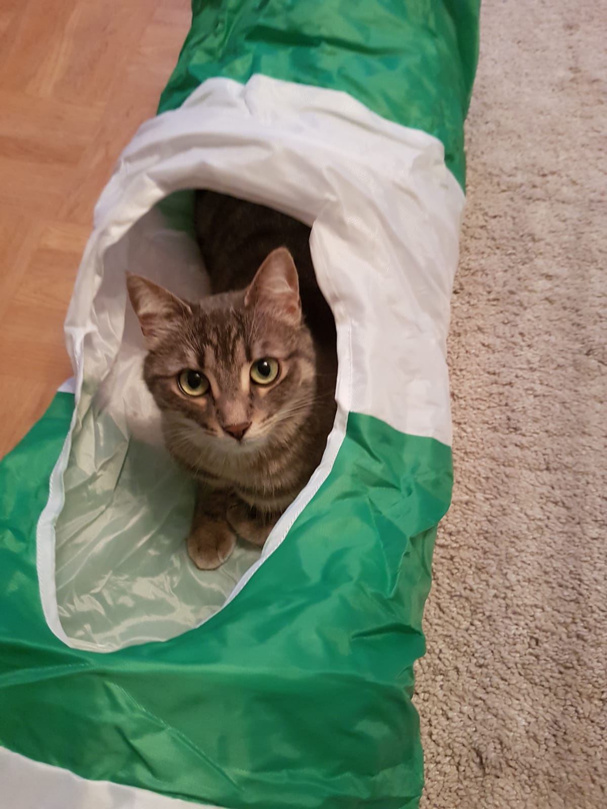 Minou ist eine sehr aktive Katze, die gerne viel rennt und springt.