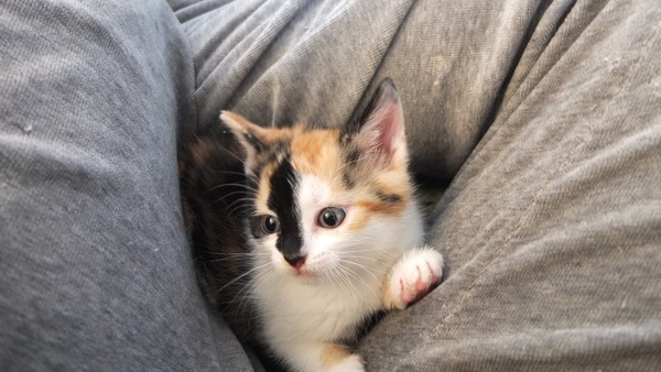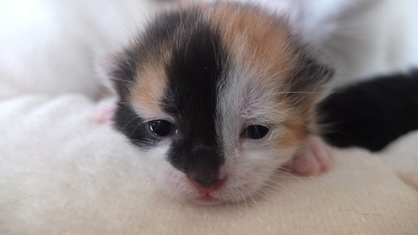 Malaika war die erste im Bunde. Sobald sie sehen, hören und laufen konnte zeigte sie sich stets ein kleines Quentchen interessierter am Menschen, kam schon früh zum Rand des Laufstalls gewackelt wann immer sie wach war und sich die Pflegetante zeigte. Mit 3 kraftvollen Brüdern hat die Maus einiges zu tun und zeigt bereits jetzt sehr schnell durch Protestquietschen mit jedem ihrer Brüder, dass ihr das zu viel und zu grob ist. Da kam der Mensch ihr teilweise gerade recht und mit 4 Wochen schon kuschelte sie sich schnurrend bei Mensch ein. Nun aktuell hat sie - wie ihre Geschwister auch - natürlich meist viel aufregenderes im Sinn als zu liegen und kuscheln ;-)