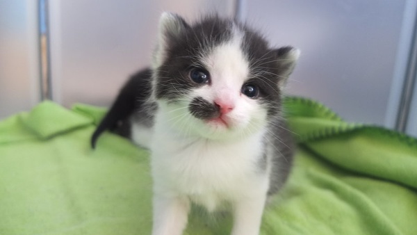 Farbe: Schwarz-weiß mit kleinem schwarzen Fleck rechts am Mäulchen