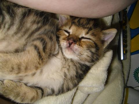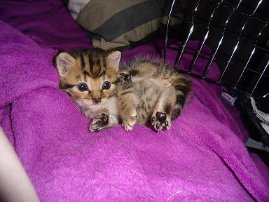 Am 31.05.2012 bekamen Mel und Holger einen Anruf. Eine Frau hätte ein kleines Kitten gefunden und sie würde es sofort vorbei bringen. Die Dame brachte ein kleines Kätzchen (von der Tierärztin auf vielleicht 2-2,5 Wochen geschätzt), dass maunzte und Hilfe brauchte. Da konnten sie natürlich nicht nein sagen.
