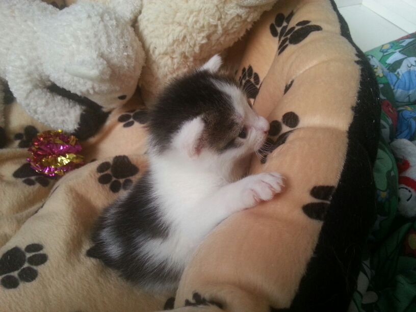 Sunny erblickte am 6. April 2014 das Licht der Welt, nachdem seine Mama Emma quasi pünktlich zur Geburt bei Kristina und Tobi auf der Pflegestelle eingetroffen war. Im Moment bekommt er noch all-inclusive Service von Mama Emma, allerdings hat er neuerdings auch schon Nassfutter-Milchshakes für sich entdeckt. Ansonsten erkundet er die große weite Welt seines Pflegestellen-Zuhause und hält dort alle auf Trab.
