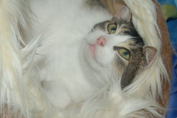 Nachdem sie mich nun groß gezogen hat, wünsche ich mir von ganzem Herzen, dass sie eine liebe Familie findet, in der sie eine oder mehrere Katzenfreundinnen hat, mit denen sie sich gut unterhalten und spielen kann. Und natürlich wünsche ich mir auch liebe Menschen, die sie auf dem Schoß sitzen lassen und zwischen den Öhrchen und an der Wange kraulen. Denn da hat sie es am liebsten.