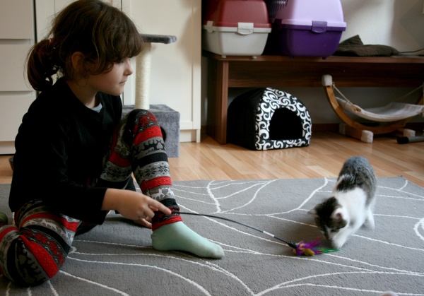 Beide kommen wunderbar mit der 7 jährigen Tochter im Hause klar und lieben es unbeschwert mit ihr zu kuscheln und zu spielen.