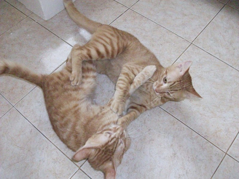 Typisch nach Katermanier raufen, toben und spielen beide zusammen, weshalb die Beiden nur im Doppelpack vermittelt werden.