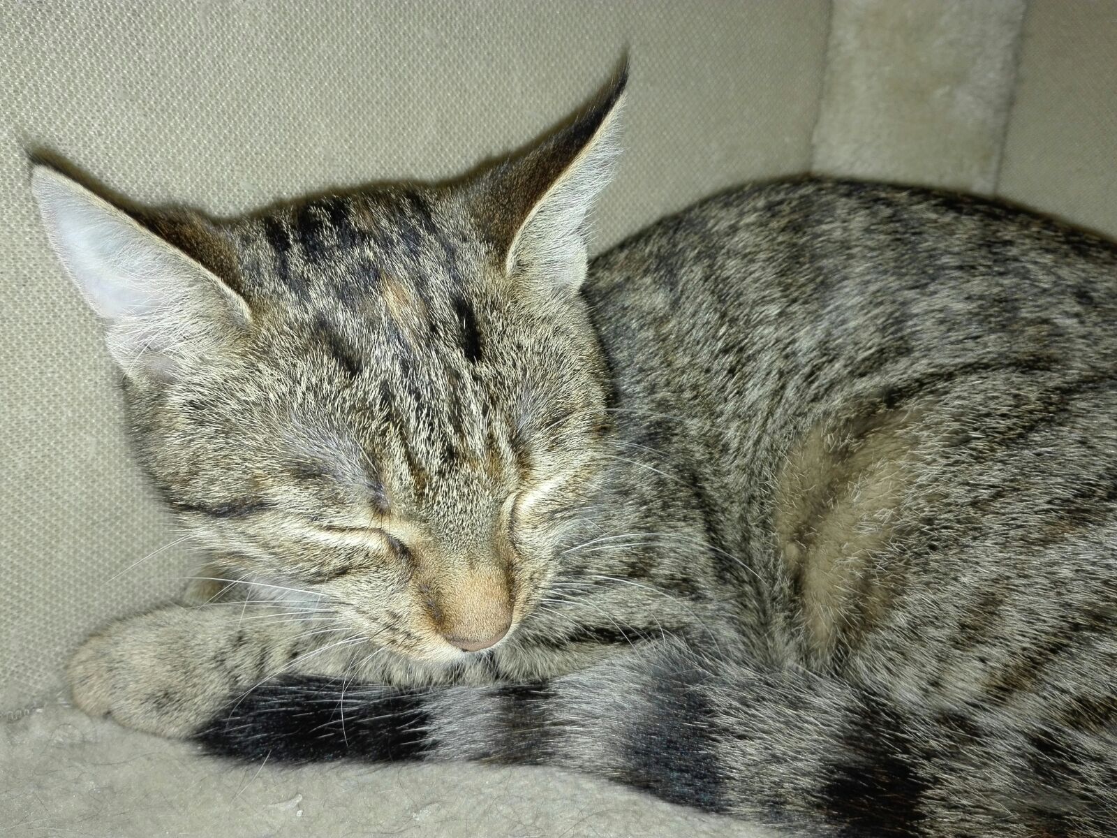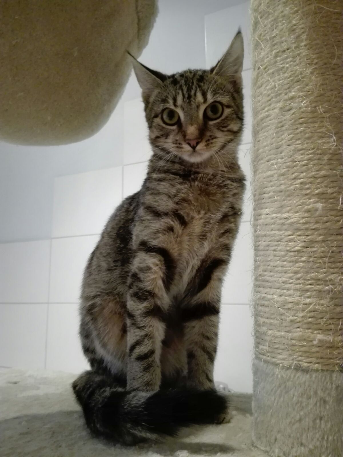 Mein Betragen ist natürlich vorbildlich, ich benutze brav das Katzenklo und auch den Kratzbaum, ich muss ja einen guten Eindruck machen, damit ich als schüchternes Tigermädchen nicht einfach so übersehen werde.