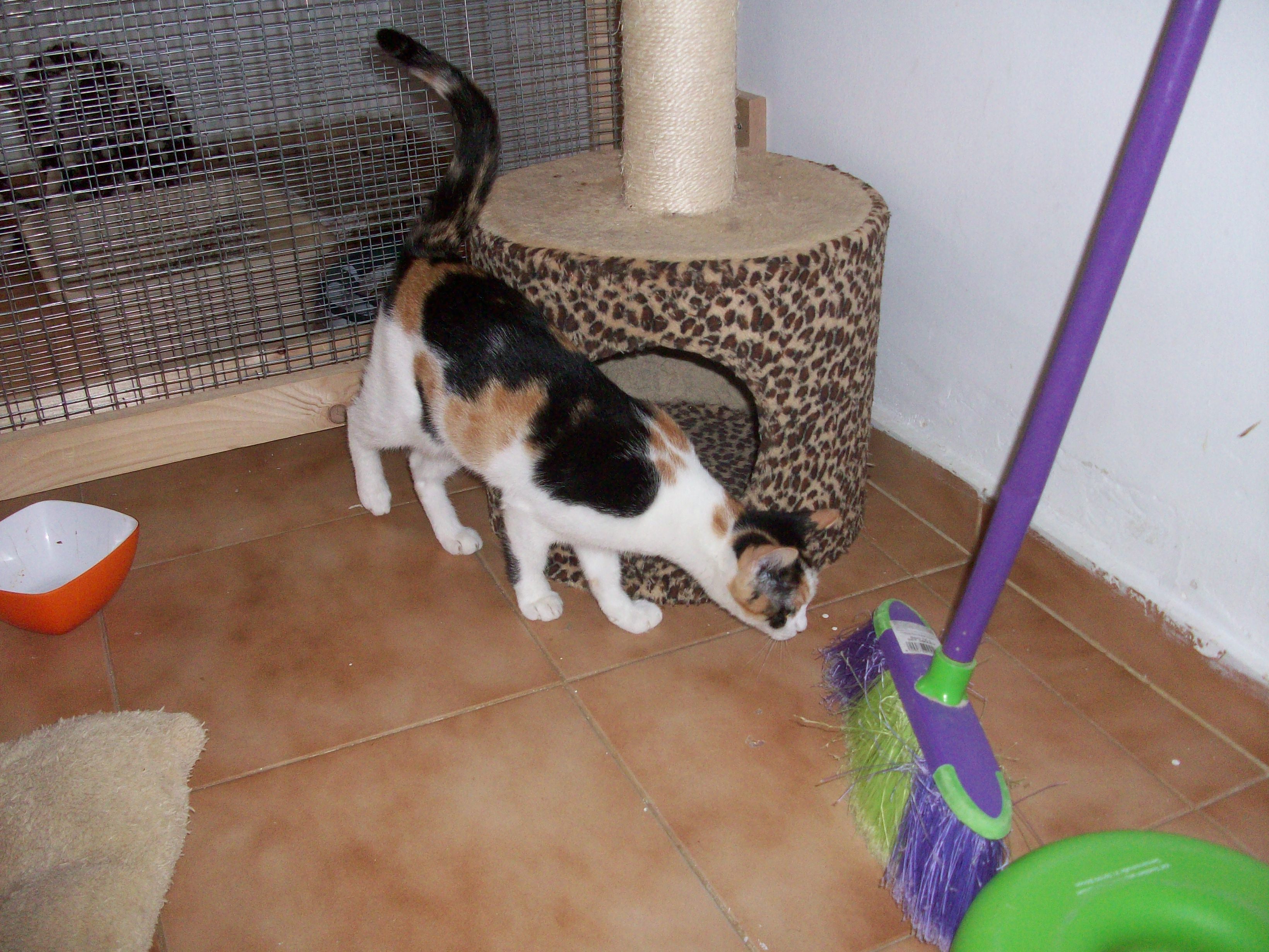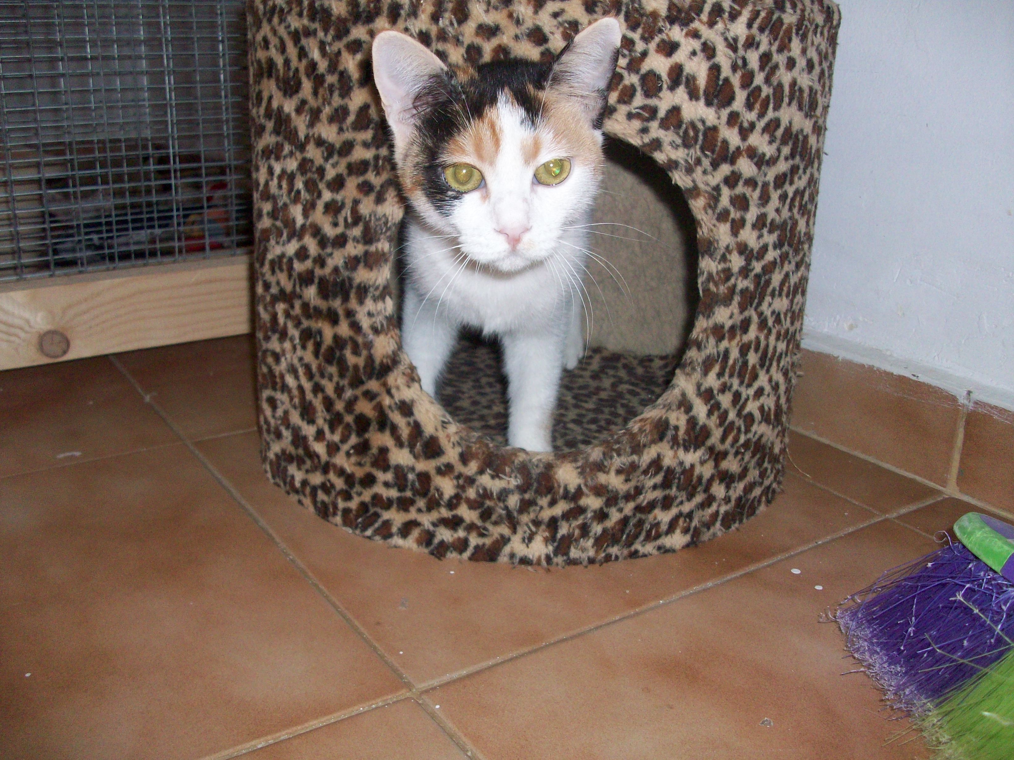 Chanti ist eine typische Katze die sich von ihrem frühen Leben gemerkt hat, dass nicht alles nett und toll ist. So braucht sie eine kleine Weile um neue Menschen kennenzulernen und zu vertrauen, ist also ein wenig schüchtern - von Fremden lässt sie sich nicht anfassen. Man braucht eben etwas Geduld als Mensch und sollte nicht direkt auf sie zurennen. Ihre kätzische Neugier führt sie allerdings immer wieder mutig zu neuen Dingen und so ist gesichert, dass sie von sich aus Kontakt suchen wird. Hauptsächlich spielt sie mit ihrer Schwester Eleni, mag aber die anderen Katzen auch ganz gern.