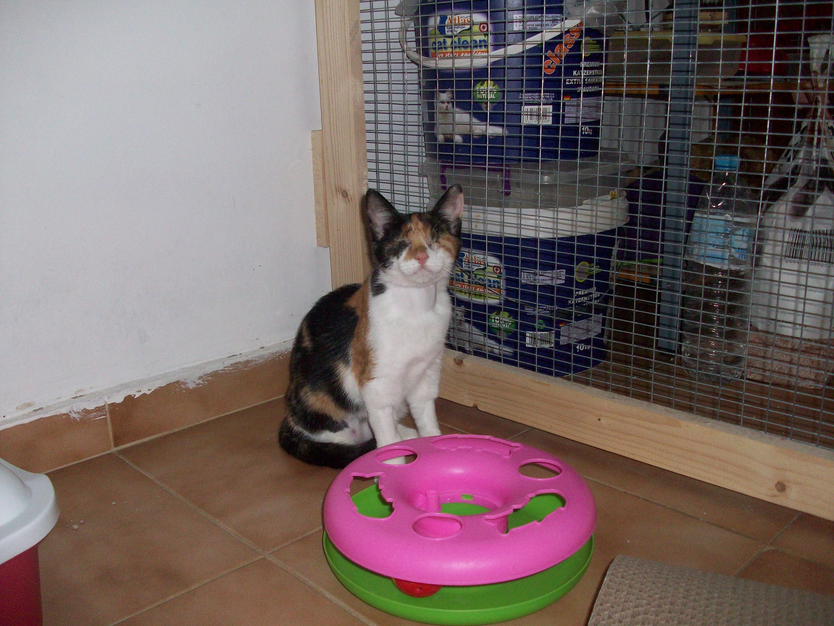 Mit anderen Katzen und neuen Eindrücken kommt sie ebenfalls gut klar, ist anfangs nur etwas vorsichtiger bis sie sich auskennt. Da Katzen durch ihre Schnurrhaare ebenfalls sehr viel 'sehen' merkt man Eleni ihre Blindheit kaum an!