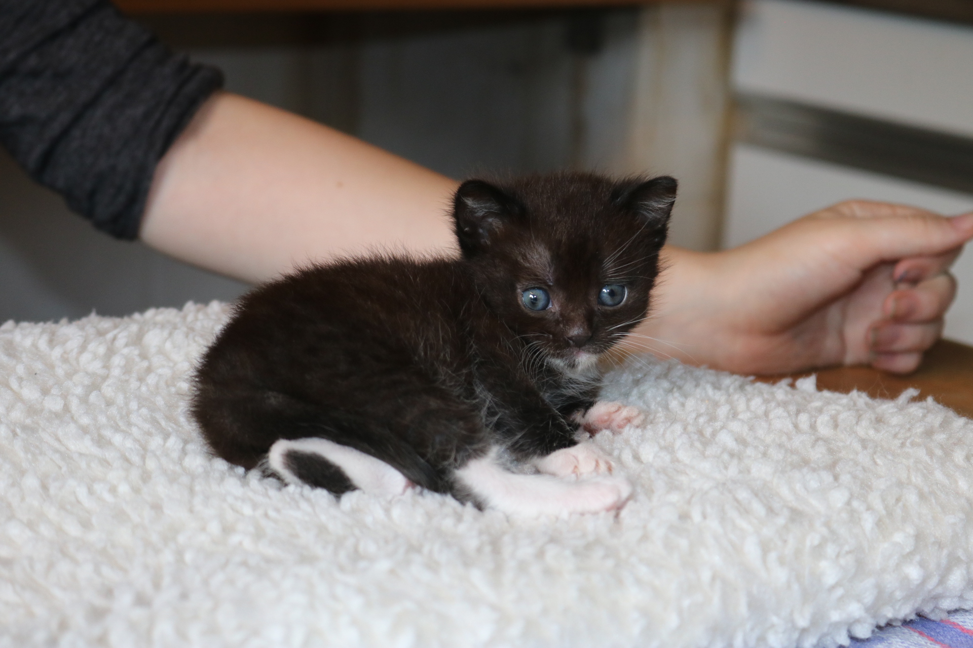 Als Sorgenkind der Kittengruppe wurde Alice mit der Flasche groß gezogen, lange war sie die Kleinste aber hat dank ihres unbeugsamen Lebenswillens gut aufgeholt. Sie hatte von Anfang an am meisten Menschenkontakt. Alice ist verkuschelt und möchte viel Zeit mit ihren Menschen verbringen. Wenn das Kittenzimmer betreten wird muss sie als erstes Hallo sagen und möchte erst mal auf den Arm genommen werden.