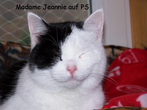 21.01.2012 Es ist soweit. Ich fahre zum vereinbarten Treffpunkt an der Autobahn. Eine nette Frau gibt mir lächelnd die Box. Darin ein verschüchtertes Katzenmädchen. Das Zimmer ist vorbereitet. Sobald sich ihr jemand nähert, zittert ihr Schwänzchen voll Vorfreude. Aber nicht nur ihr Schwänzchen und nicht nur aus Freude. Es ist ein kalter Januar. Zu kalt für Jeannie. Die „Quarantäne“ in einem Zimmer unterm Dach muss verkürzt werden. Nach zwei Tagen steht der letzte kleine Umzug an. Es geht ein Stockwerk tiefer.