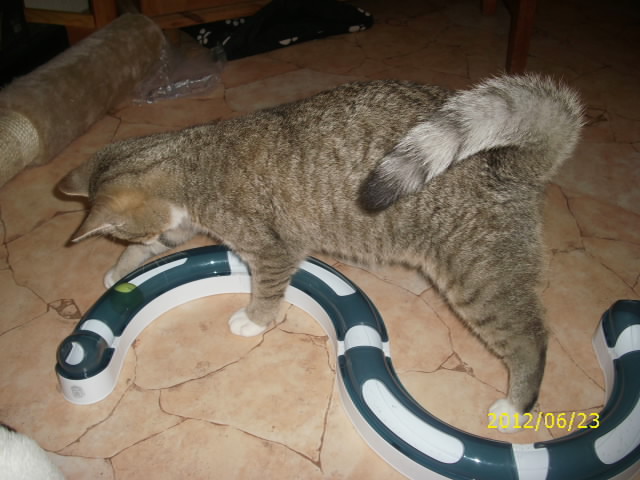 Leider bin ich immer noch nicht ganz fit, ich befürchte der Schnupfen wird bleiben, aber meine Tierärztin inhaliert tägl. mit mir und das bekommt mir gut. Ich tobe und wetze mittlerweile durch die Wohnung, bin aber schnell ko